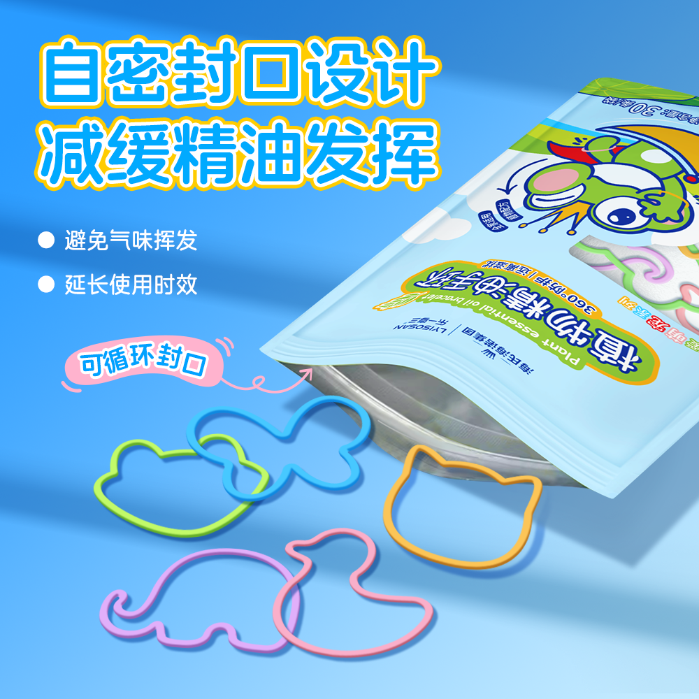 采用植物精油黑科技,精选香茅精油、柠檬桉叶油及薄荷油,温和不刺激,就像给皮肤装了结界,让蚊子瞬间开启"路痴模式"。重点是颜值爆表!马卡龙配色系在手腕,可爱萌宠,优选防水剂硅胶材质,不含驱蚊胺,大人小孩皆可使用。自带可循环封口设计,避免精油和气味挥发,延长使用时间及效果。