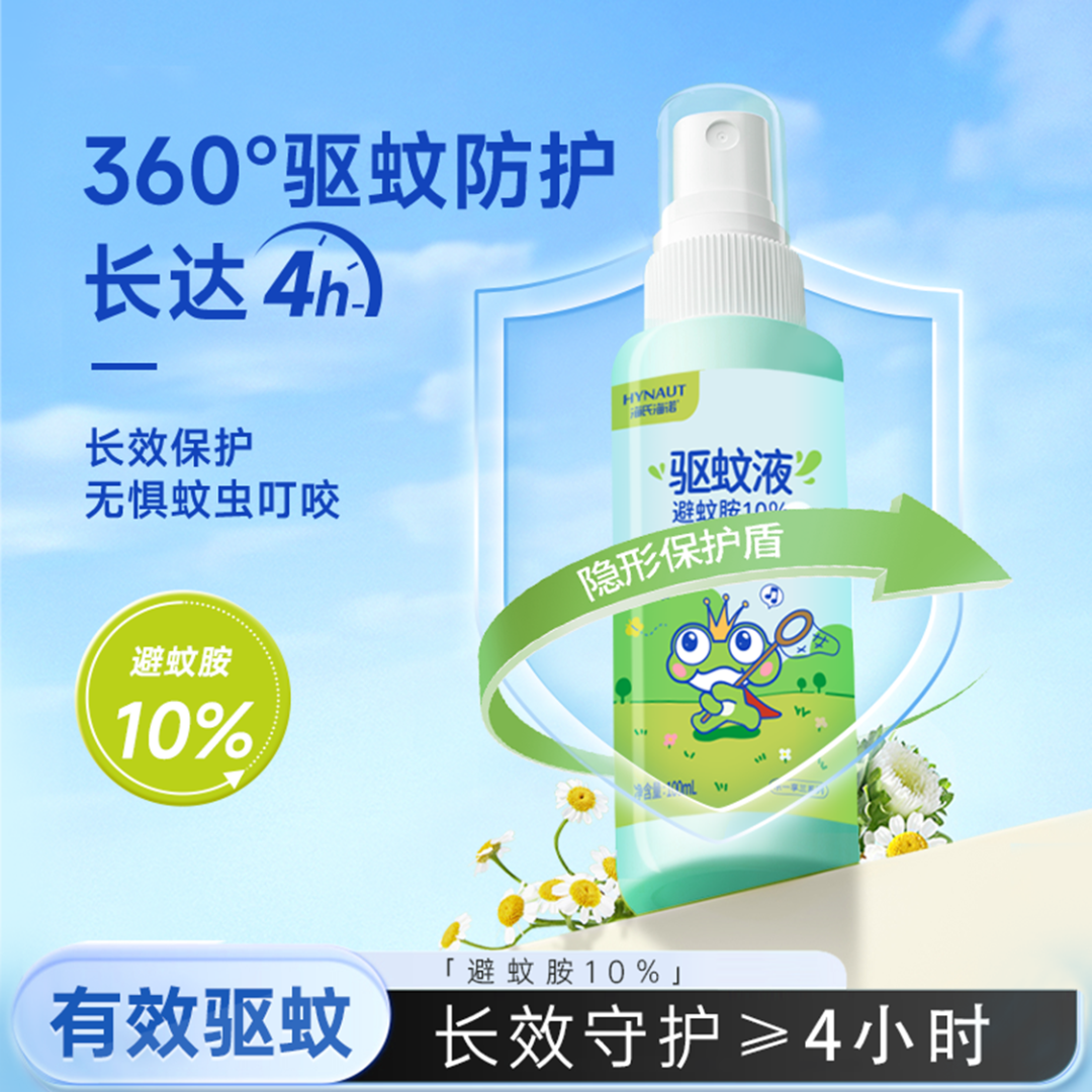 对于有宝宝的家庭,选择驱蚊产品更需谨慎。海氏海诺乐享驱蚊液坚持0酒精、0香精,德国进口伊默宁溶剂,妈妈放心更安心。pH值接近肌肤酸碱度,温和不刺激。(小月龄宝宝建议还是选择物理驱蚊方式)